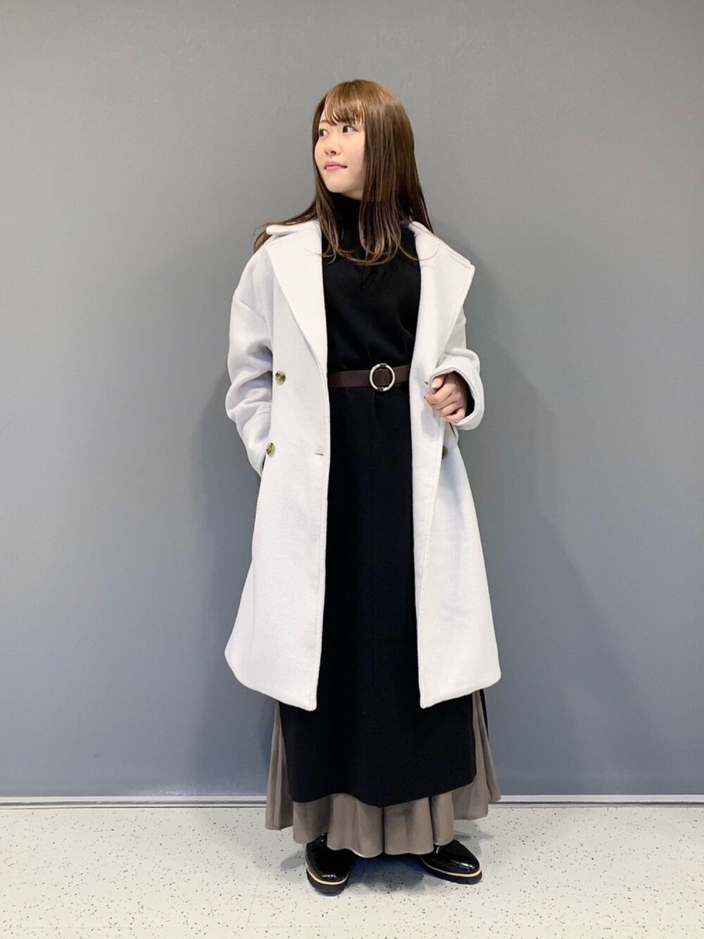 ロングコートを使った綺麗目スタイル♫ このコートスッキリ見えるから好きっ💕 着心地抜群でHEPスタッフほぼ全員がゲットしたワンピースを合わせました😊 ちょっぴりアレンジしてスカートをレイヤードさせましたよ!! ミスティーウーマンのシューズは軽くて1日中履いていても疲れなくて良いっ✨