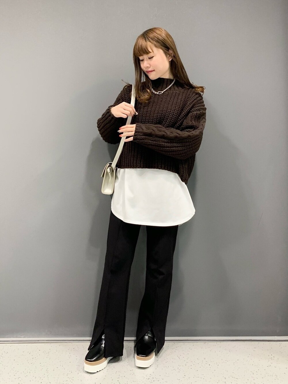人気ですぐに完売してしまっていたニットが店頭にも入荷しました💕 短丈なのでレイヤードスタイルが映えますし、どんなボトムにも合わせやすいっ🙆♀️ 今回はPAGEBOYらしくロンT×スラッっと見えするパンツを合わせてオンナマエに仕上げました🌟