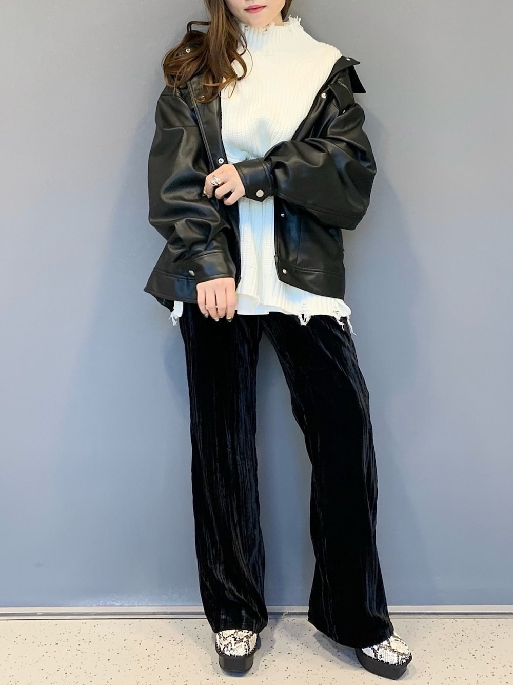 みはのニット/セーター「ダメージタートルニット」を使ったコーディネート