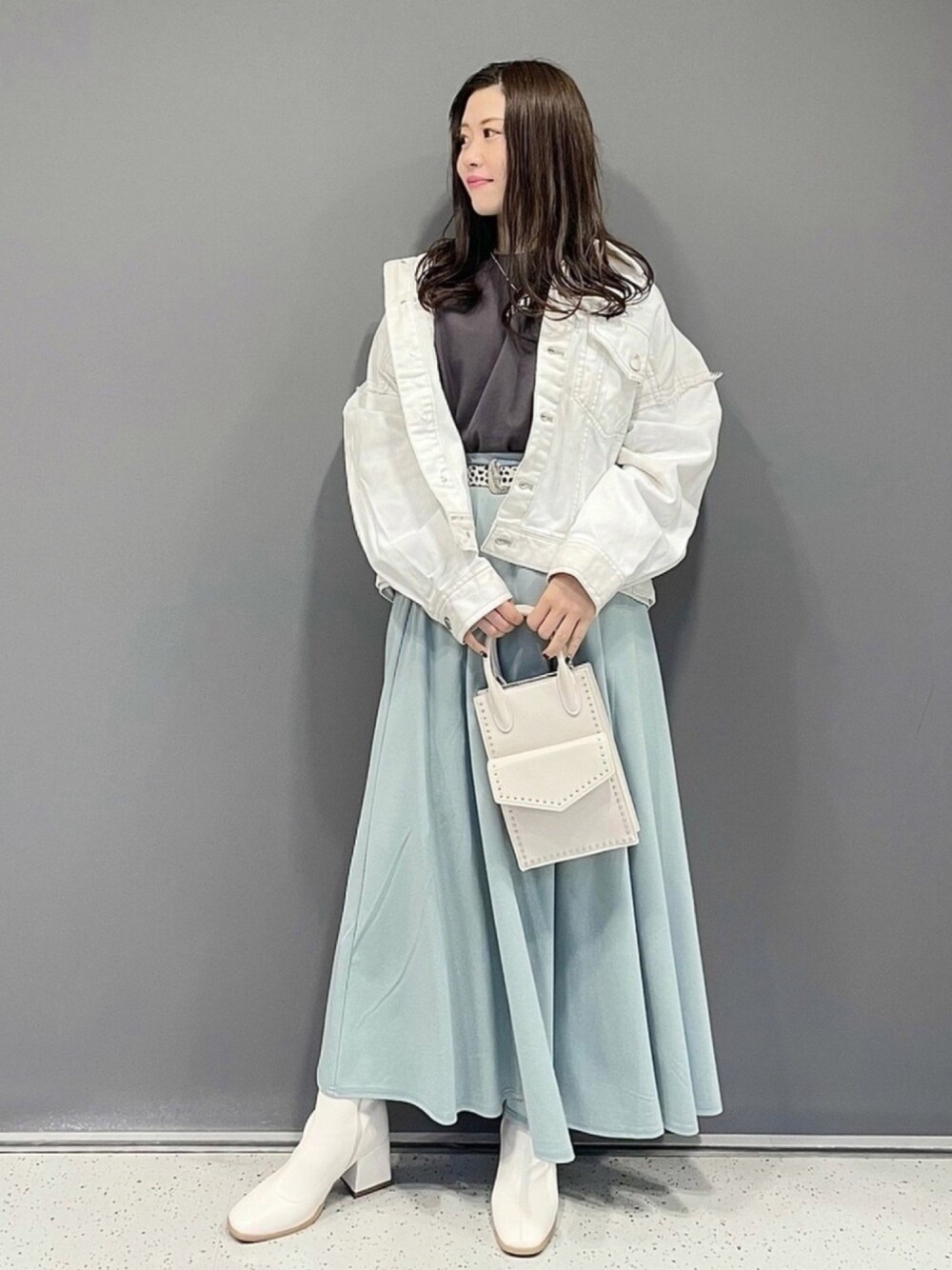 可愛い系が好きな方、ナチュラルが好きな方、デート服をお探しの方にオススメコーデの紹介です💕 Gジャンってカジュアルな印象が強いと思います。 PAGEBOYで入荷しているGジャンはショート丈なので、スカート合わせもバランス良く着られます🥰 春カラーといえば淡いお色味…! ってことで白を基調とした合わせにしてみましたよ✨たまにはちょっぴりガーリーにしてみるのはどうでしょうっ??