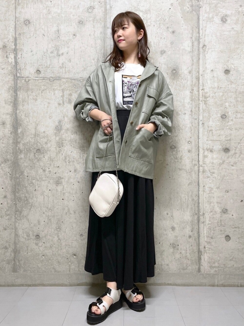 レザージャケットは柔らかいお素材なので着やすく、着込みやすい♫ ポッケが大きいのがオシャレで便利!と好評頂いております❤︎ レザージャケットはパンツスタイルのイメージが多いですが、スカートとも相性良いですよっ☺︎