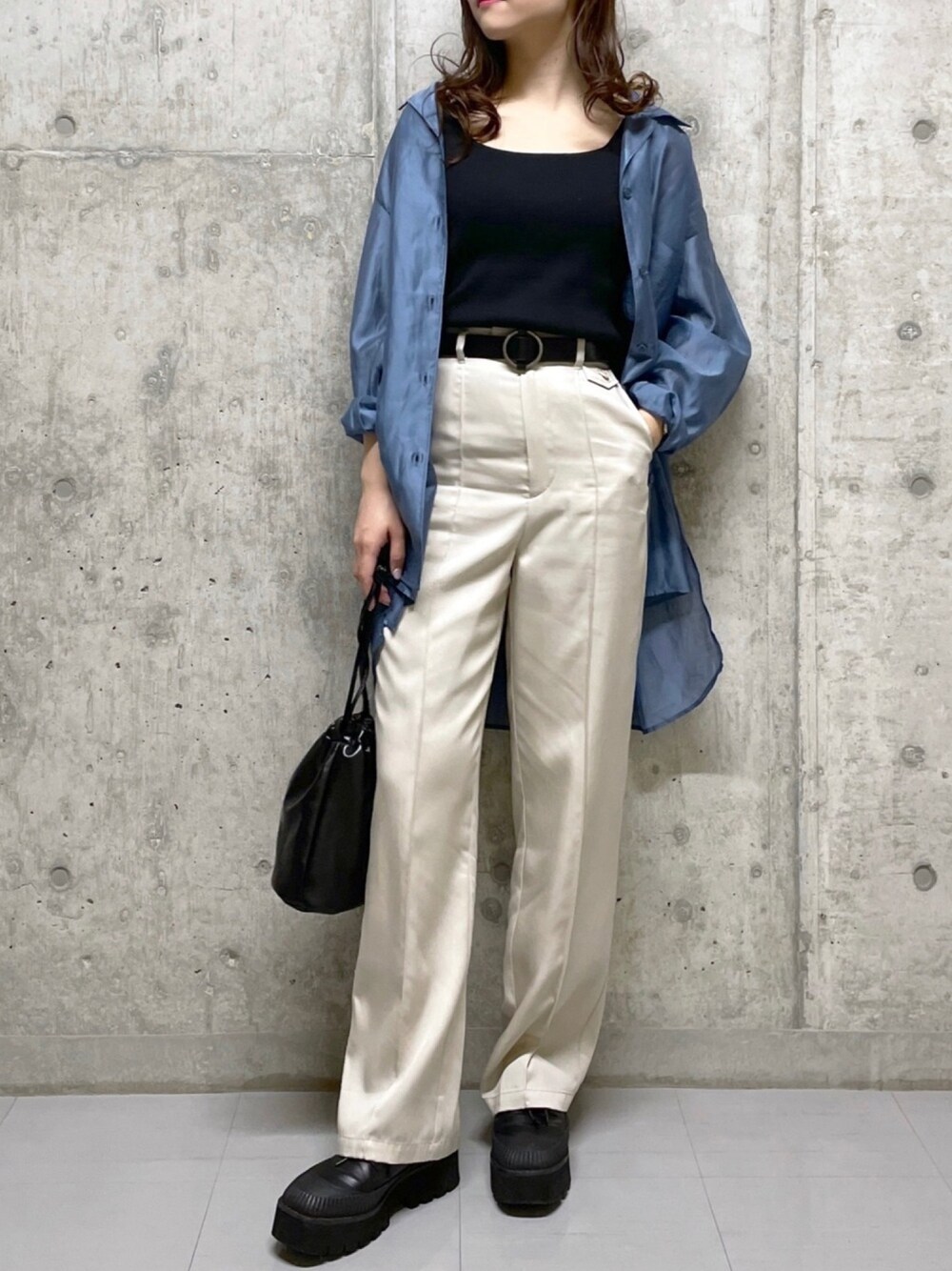 お得過ぎるパンツを着回し❤︎ 活躍するので買い足しにオススメ! 光沢のあるシャツは透け感がある程薄手なので、夏でも着回せるのが魅力♫ ロング丈で身体に馴染みやすい素材なので、すっきり見せてくれるのも嬉しいですよね☺︎ カッコいいスタイリングが好きな方にオススメです❤︎