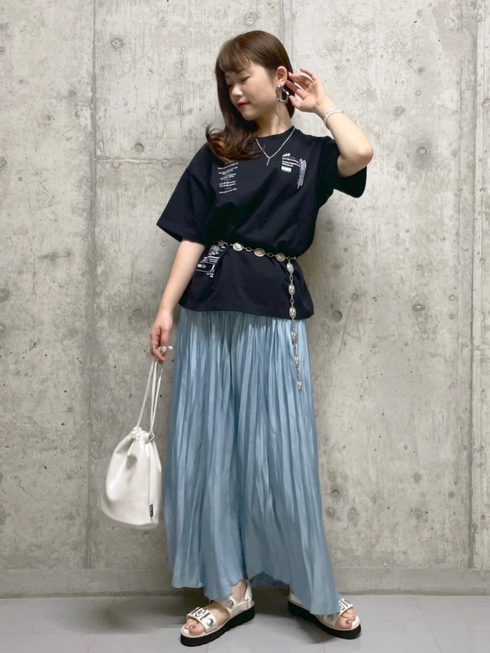 これからの時期Tシャツが沢山必要になってきますね☺︎ 半袖を買っておくと夏までしっかり長〜く着れますよ♫ 大人可愛いTシャツが可愛いっ❤︎ スカート合わせでもバランス良く着こなせるのが良い!