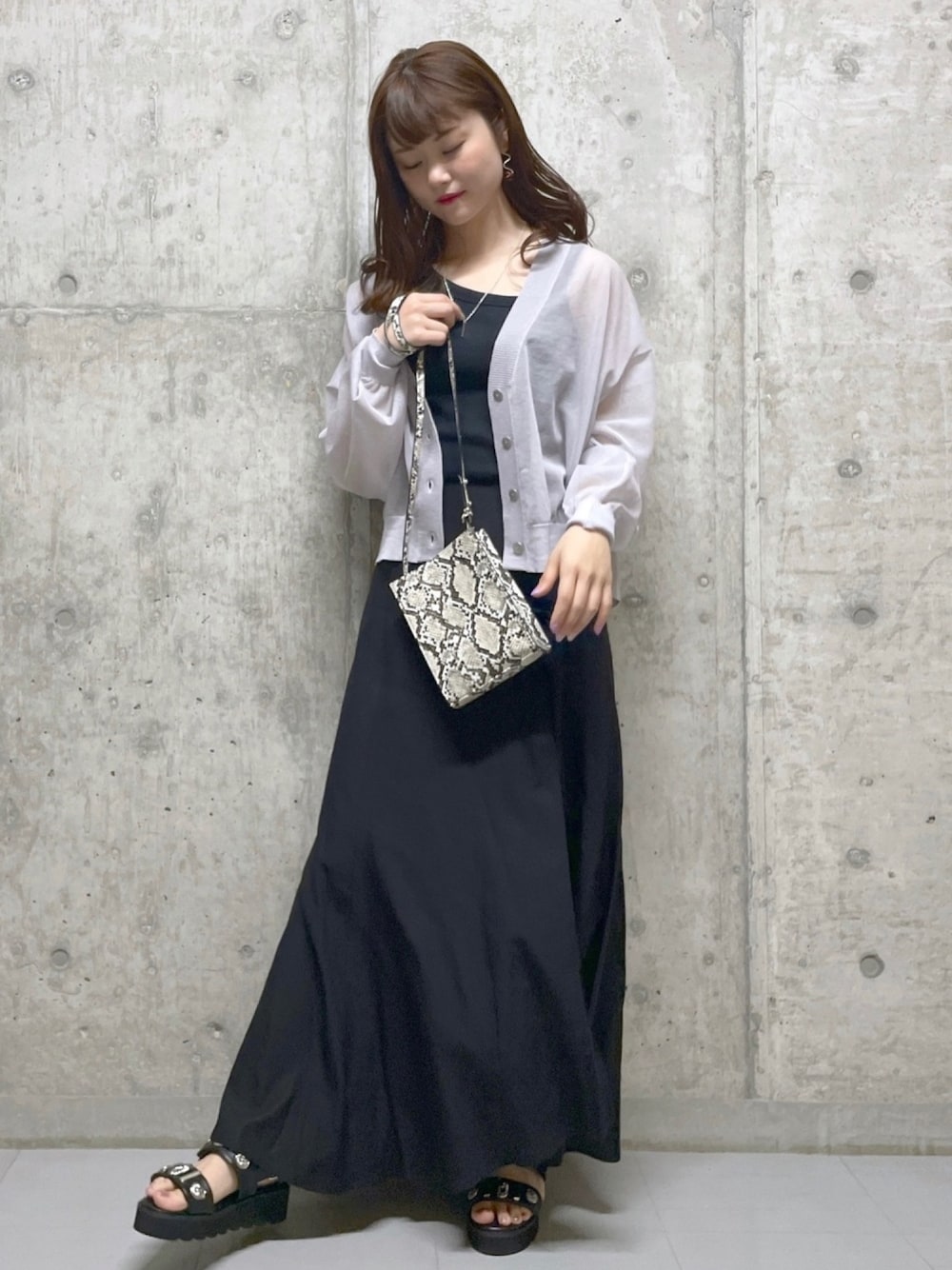 ちょっと羽織るのに持っていたい軽めのカーデ❤︎ 黒で引き締めて+αとして透け感のあるカーデを羽織りました☺︎ スカートはシンプルになりすぎないリボンが付いてます♫
