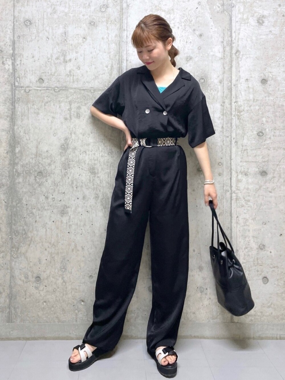 ゆるくてラフなオールインワンが登場!! 元々セットされたベルトではなく、あえて柄のベルトを使用しました☺︎(ベルトは店頭入荷してます) ウエスト周り大きいので小柄さんはしっかりウエスト締めましょう。 梅雨でも履きやすい厚底のサンダルをチョイス!厚底だと安心♫ 黒でメンズライクにし、カラーインナーをチラ見せ!好きなカラーを是非合わせてみて下さい❤︎