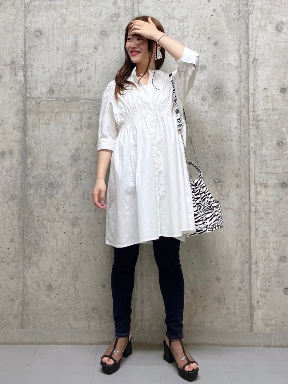 大人ベーシックスタイル!! どんな場面にも合う合わせです。 バッグで遊び心をプラスしました♫ ハリ感のあるワンピースは大人女性にピッタリ。 切り替え位置が高いので脚長効果も◎ 太もも、ヒップライン気になる部分を隠してくれるありがたいアイテムです☺︎ スキニーは伸縮性抜群なので、足の曲げ伸ばしがしやすいと多くのお客様から喜ばれています♫