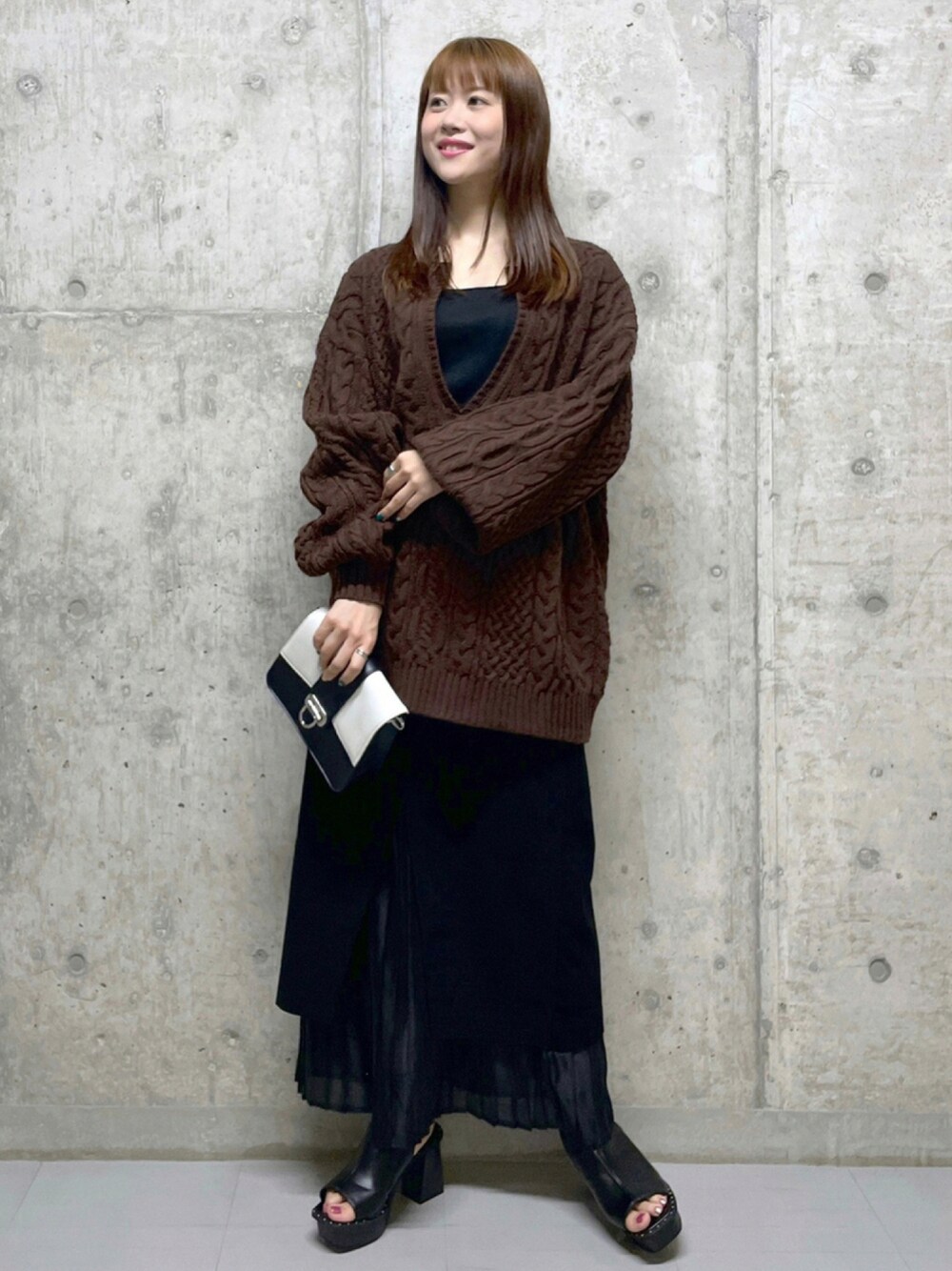 【staff boad▷▶︎みはで検索】 #WEB限定×みは流コーデ インナー、スカートの色味に統一感を持たせました! 黒を合わせることでグッと締まった印象になりますね❤︎ バッグはあえてショルダーを使わず、クラッチバッグ風に持つことでよりオシャレポイントアップ↑
