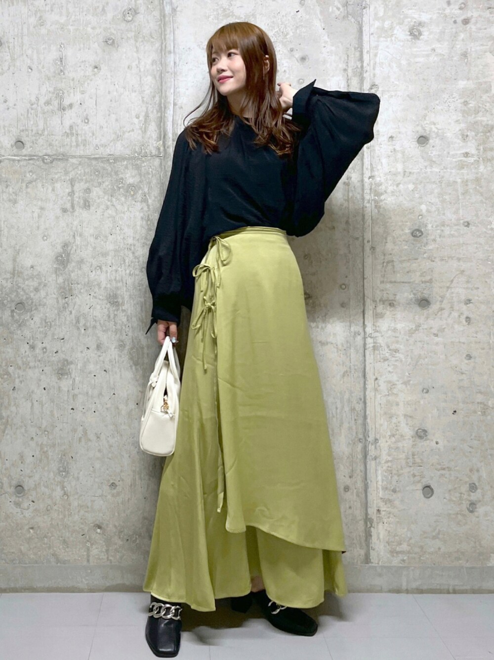 【staff boad▷▶︎みはで検索】 大人デートを連想させるようなコーディネートに仕上げました❤︎ コーディネートは2〜3色くらいで組むとまとまりが出ます◎ バッグを黒にすると一気にカッコいいコーデになりますし、白を1つ入れるだけで女性らしく可愛らしい印象に。 ボリューム感のある袖は引き続きトレンド入りしています。 肩のギャザーが肩まわりを華奢に見せてくれます❤︎ 落ち感の出る素材なので着ると全体的に細く見えますよ! スカートは履き心地が良いと大好評! こちらはウエストを折れるタイプではないので、155センチ身長くらいだとヒールや厚底と合わせて下さいね☺︎