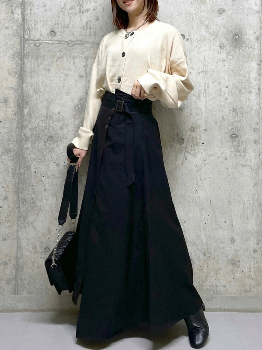 みはのカーディガン/ボレロ「ウスモチモチクルーミドルカーディガン 218154」を使ったコーディネート
