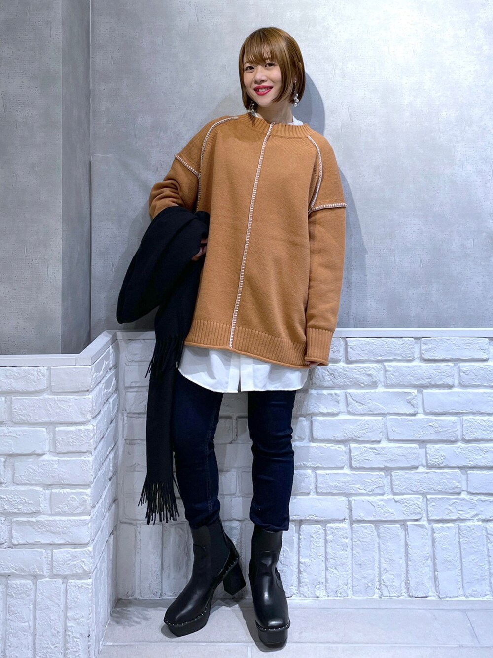 みはのニット/セーター「ハイショクステッチプルオーバーLS 216127」を使ったコーディネート
