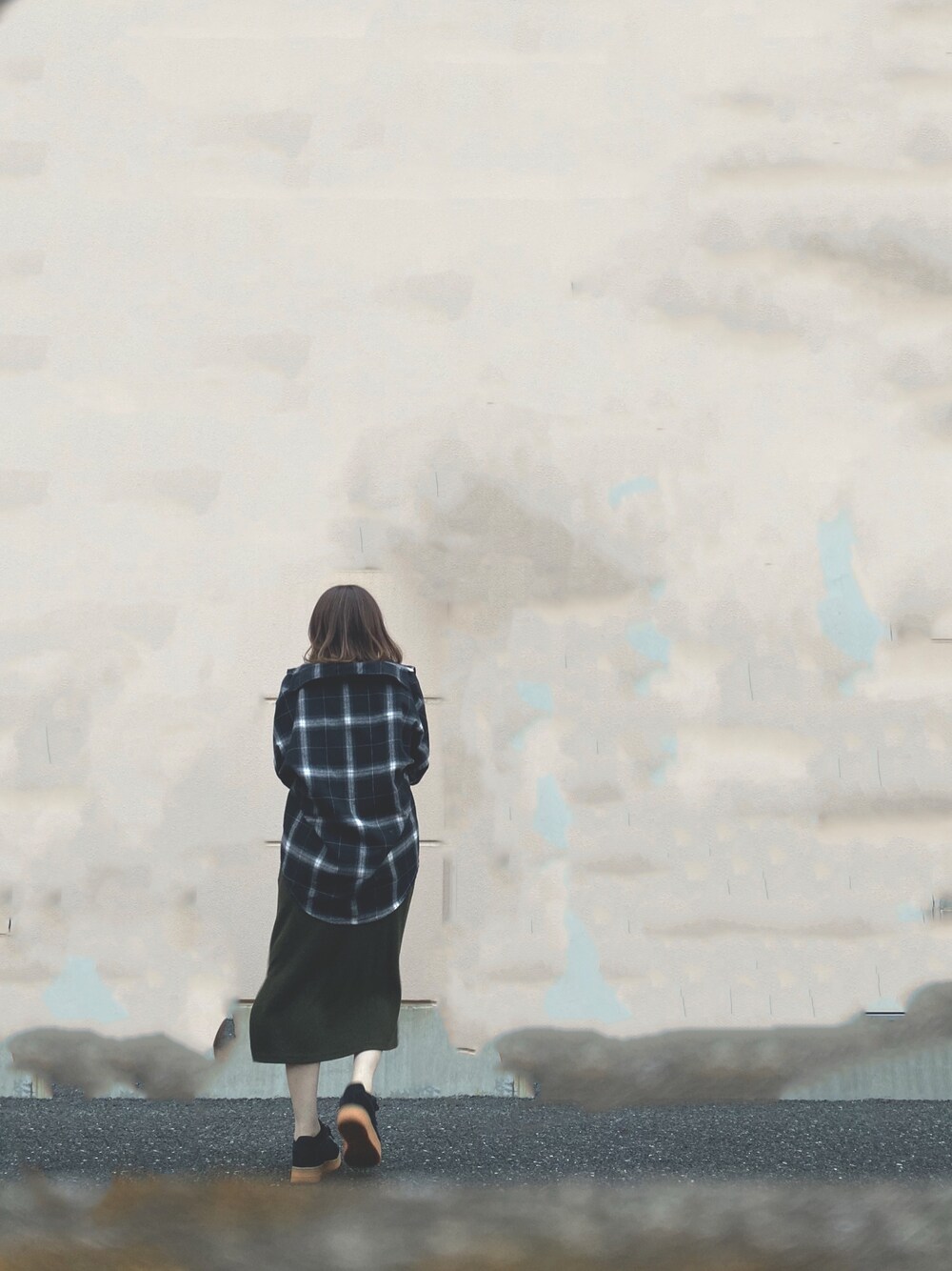 ブラック系のスニーカーを着用したレディースの秋コーディネートの1枚目の写真