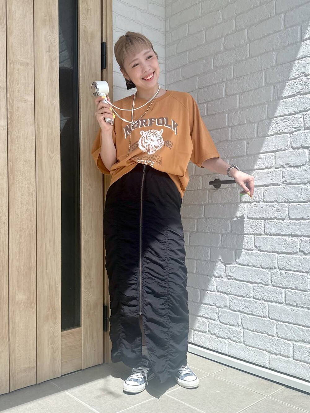 🌼 158cm/体重計はぶっ壊れ中ですが、着々と増量してる気しかしません…😭 ▶ 足のサイズは23.5cmです! 🌼 素材のアップや動画も載せてるので、6枚目までスワイプして見ていただけると嬉しいです♬ 🌼 好きなテイストは「ガーリー・カジュアル・シンプル」! 着心地の良い素材感を大事にしつつ、ガーリーな可愛さは忘れずに♡ ママでもおしゃれ楽しみたいって気持ちで着てますっ✌︎ ーーーーーーーーーーーーーーーーーーーーーーー 【ヴィンテージ感×ギャザーでラフコーデ〜っっ🐅🖤】 こなれ感バッチリなアニマルプリントTは、 古着風なフェード感がたまらん〜〜っっ🔥✨ ゆるっとラグラン袖で二の腕カバーもできて楽ちんっ✌️ 合わせたのは、ギャザー&ジップが主役級なシャカシャカスカート🖤 薄手ナイロン素材で超軽いのに、しっかり裏地付きで透けも気にならんのが嬉しい〜〜‼️ ウエストゴムで動きやすさも100点満点っっ‼️ さらにっ!この夏大活躍間違いなしの冷却ファンもリアルバイ🧊✨ 冷却プレート付き&首かけ・卓上・ハンディの3WAYで、猛暑も余裕っっ‼️ 持ち運びラクちん&涼しさ即チャージできて、ママには神アイテムすぎる〜っっ🌈 【着用サイズ】 Tシャツ:フリーサイズ スカート:Mサイズ 冷却ファン:ガチでおすすめ(笑)🌀 ーーーーーーーーーーーーーーーーーーーーーーー 最後までご覧いただきありがとうございます◎ 他のコーデも▷ ◁にまとめてます! “ちょっといいかも!”って思ったら ♡右のハート♡(お気に入り)やフォローしてくれたら嬉しいです♪ 【Instagram】▶ 自由気ままに日常も発信中っ! LAKOLEの雑貨もゆるっと紹介してます〜!