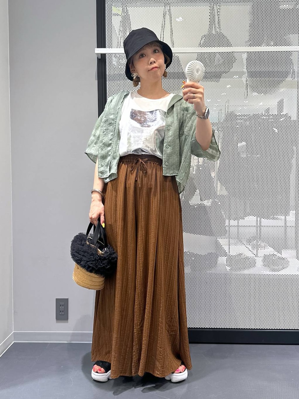 🌼 158cm/体重計はぶっ壊れ中ですが、着々と増量してる気しかしません…😭 ▶ 足のサイズは23.5cmです! 🌼 素材のアップや動画も載せてるので、6枚目までスワイプして見ていただけると嬉しいです♬ 🌼 好きなテイストは「ガーリー・カジュアル・シンプル」! 着心地の良い素材感を大事にしつつ、ガーリーな可愛さは忘れずに♡ ママでもおしゃれ楽しみたいって気持ちで着てますっ✌︎ ーーーーーーーーーーーーーーーーーーーーーーー 【公園ピクニックは涼しげコーデで♡ ママの味方スリムファンもお供にっ🧺💛】 今日は子どもたちと公園ピクニックdayっっ‼️ 暑さ対策バッチリで快適&かわいいママコーデにしてみたよ〜っ✌️✨ グリーンシャツはさらっと羽織れる万能アイテム♡ ほんのりチェックのシアー感があって、暑苦しく見えないのも推しポイント〜! Tシャツはさりげない箔プリントがアクセントになってて、カジュアルすぎず程よく大人見え♡ ゆったりサイズで動きやすさも◎っ✌️ 主役のブラウンスカーチョは、スカート見えするゆったりワイド! 風通しも良くて、座ったり動いたりも楽ちんっ♡ しかも涼しげ楊柳素材で汗ばむ季節も快適〜! そして忘れちゃいけないのが、瞬間冷却プレート付きのスリムファンっっ‼️ コンパクトなのに風量も文句なしで、ピクニックや外遊びの必需品♡ バッグに付けられるカラビナ付きで持ち運びも楽ちんすぎるっ! 【着用サイズ】 シャツ・Tシャツ・スカーチョ:すべてフリーサイズ ーーーーーーーーーーーーーーーーーーーーーーー 最後までご覧いただきありがとうございます◎ 他のコーデも▷ ◁にまとめてます! “ちょっといいかも!”って思ったら ♡右のハート♡(お気に入り)やフォローしてくれたら嬉しいです♪ 【Instagram】▶ 自由気ままに日常も発信中っ! LAKOLEの雑貨もゆるっと紹介してます〜!