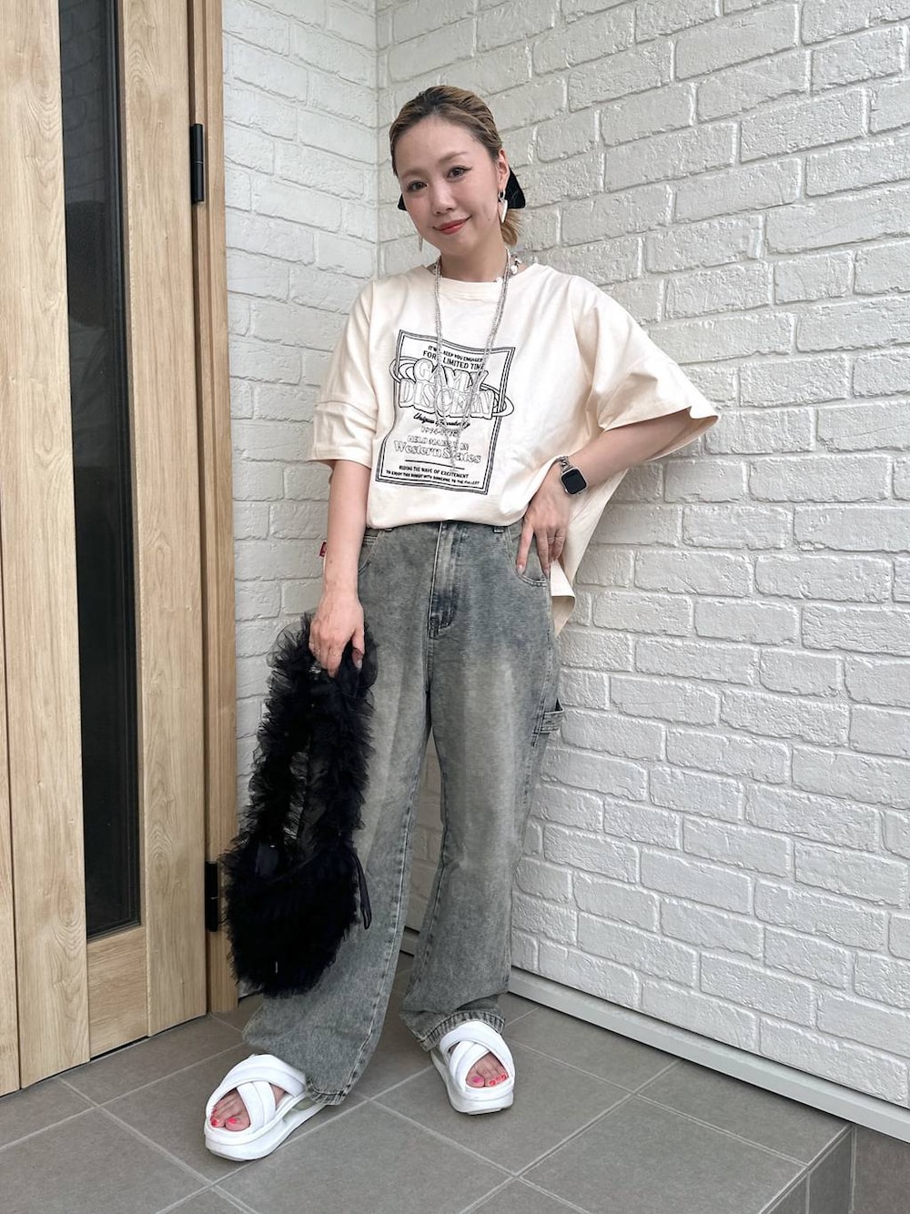 riya.(LAKOLE ラクア緑井)のデジタル腕時計「zandy/ズィー・アンド・ワイ アップルウォッチチェーンベルト/173112」を使ったコーディネート