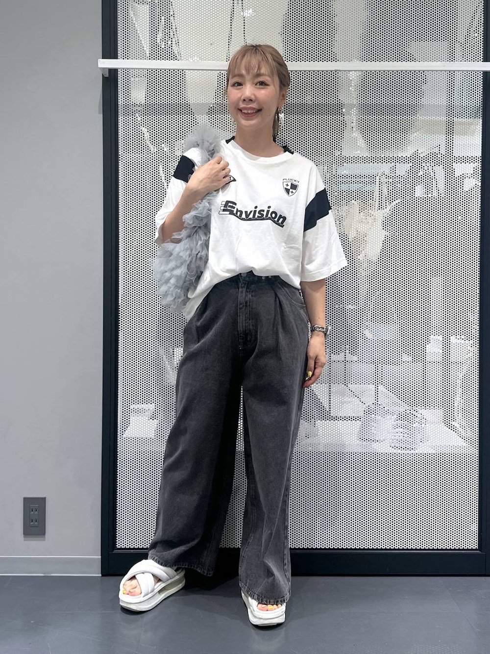 🌼 158cm/体重計はぶっ壊れ中ですが、着々と増量してる気しかしません…😭 ▶ 足のサイズは23.5cmです! 🌼 素材のアップや動画も載せてるので、6枚目までスワイプして見ていただけると嬉しいです♬ 🌼 好きなテイストは「ガーリー・カジュアル・シンプル」! 着心地の良い素材感を大事にしつつ、ガーリーな可愛さは忘れずに♡ ママでもおしゃれ楽しみたいって気持ちで着てますっ✌︎ ーーーーーーーーーーーーーーーーーーーーーーー 【トレンドTはアウトレットでお得にGET💥】 今季もイチオシのゲームプリントT🫶🏻 配色ラインがアクセントになってて、着るだけでスポMIXな雰囲気出せちゃうのがツボ〜♡ ゆったりシルエットだから、ママにも嬉しい動きやすさバツグンっ! ボトムは人気のウエストフック付きデニム👖 太ももまわりにゆとりがあるからストレスフリーなのに、腰回りはすっきり見え! このバランス感、ほんま優秀💯✨ しかもこのTシャツ、実はアウトレット商品なの👏 ラクア緑井店では、一部アウトレットアイテムの入荷があって…掘り出し物いっぱいなんですっ🩷 気になる方はぜひ店頭でチェックしてください😉✨ 【着用サイズ】 Tシャツ▷フリーサイズ パンツ▷Mサイズ着用 ーーーーーーーーーーーーーーーーーーーーーーー 最後までご覧いただきありがとうございます◎ 他のコーデも▷ ◁にまとめてます! “ちょっといいかも!”って思ったら ♡右のハート♡(お気に入り)やフォローしてくれたら嬉しいです♪ 【Instagram】▶ 自由気ままに日常も発信中っ! LAKOLEの雑貨もゆるっと紹介してます〜!