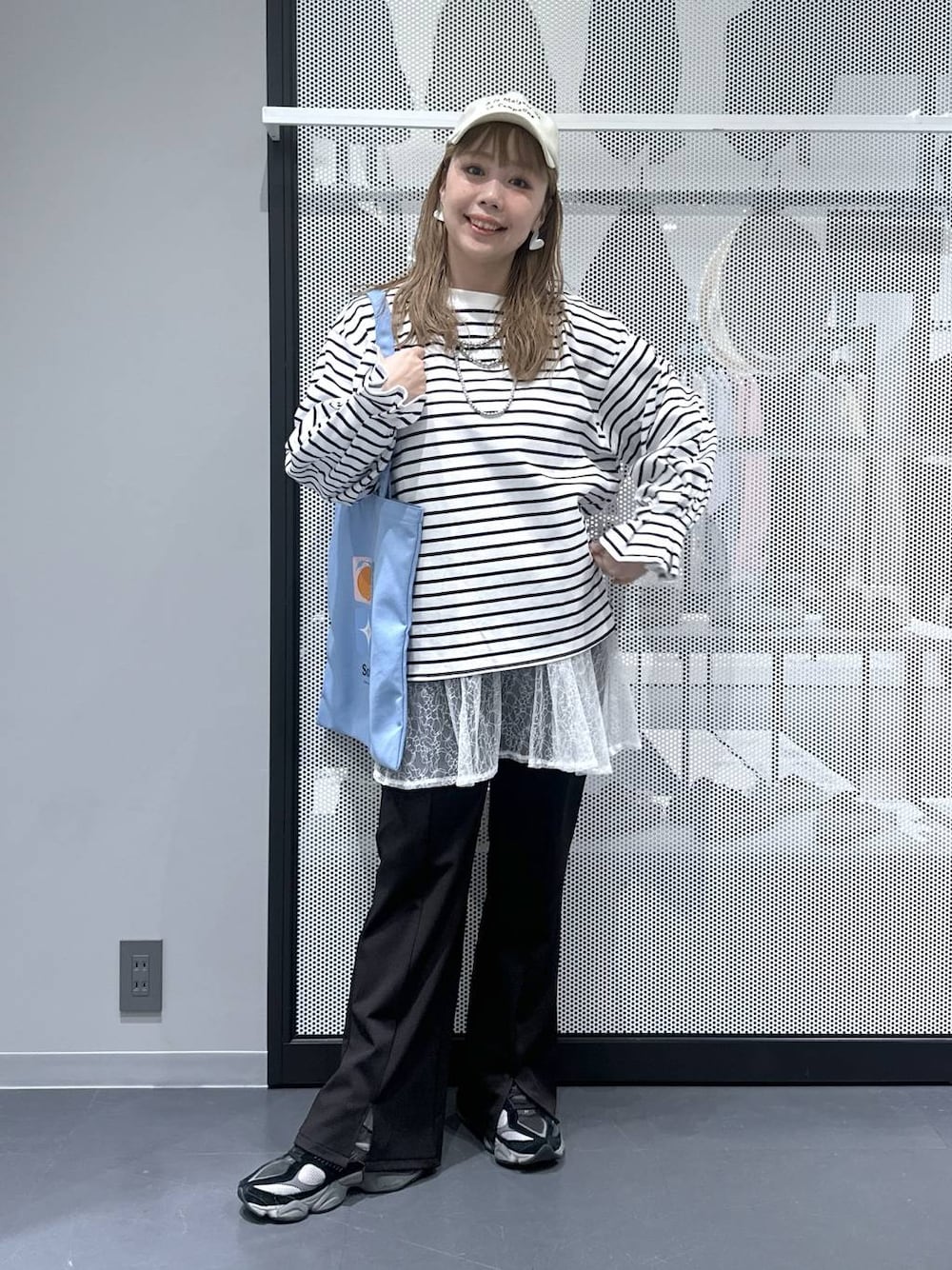 🌼 158cm/体重計はぶっ壊れ中ですが、着々と増量してる気しかしません…😭 ▶ 足のサイズは23.5cmです! 🌼 素材のアップや動画も載せてるので、6枚目までスワイプして見ていただけると嬉しいです♬ 🌼 好きなテイストは「ガーリー・カジュアル・シンプル」! 着心地の良い素材感を大事にしつつ、ガーリーな可愛さは忘れずに♡ ママでもおしゃれ楽しみたいって気持ちで着てますっ✌︎ ーーーーーーーーーーーーーーーーーーーーーーー 【ボーダー×レースで春レイヤード♡】 ボーダー好きさんにおすすめの ゆるっとシルエットトップス🫶 袖のくしゅっとした キャンディスリーブが可愛くて シンプルなのにちゃんと着映えします✨ 綿100%のシルケット素材で さらっと着心地もよくて シワになりにくいのも嬉しいポイント◎ 今回はレースワンピをレイヤードして 裾からちらっと見せてみました🤍 シンプルなボーダーでも レイヤードするだけで 一気にこなれ感出るのでおすすめです👏 ボトムはフレアパンツで 脚長見え意識のゆるカジュアルに😎 そして差し色に FRUITS AND BLOOMシリーズのトート🩵 A4サイズも入るので サブバッグとしても使いやすいですよ◎ 【着用サイズ】 ボーダートップス:Lサイズ ボトムス:Lサイズ ーーーーーーーーーーーーーーーーーーーーーーー 最後までご覧いただきありがとうございます◎ 他のコーデも▷ ◁にまとめてます! “ちょっといいかも!”って思ったら ♡右のハート♡(お気してくれたら嬉しいです♪ 【Instagram】▶ 自由気ままに日常も発信中っ! LAKOLEの雑貨もゆるっと紹介してます〜!