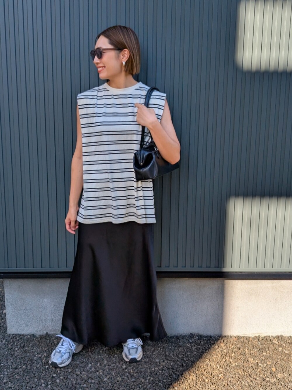 お気に入りボーダートップス🕶️サテンスカートとの相性抜群です🖤