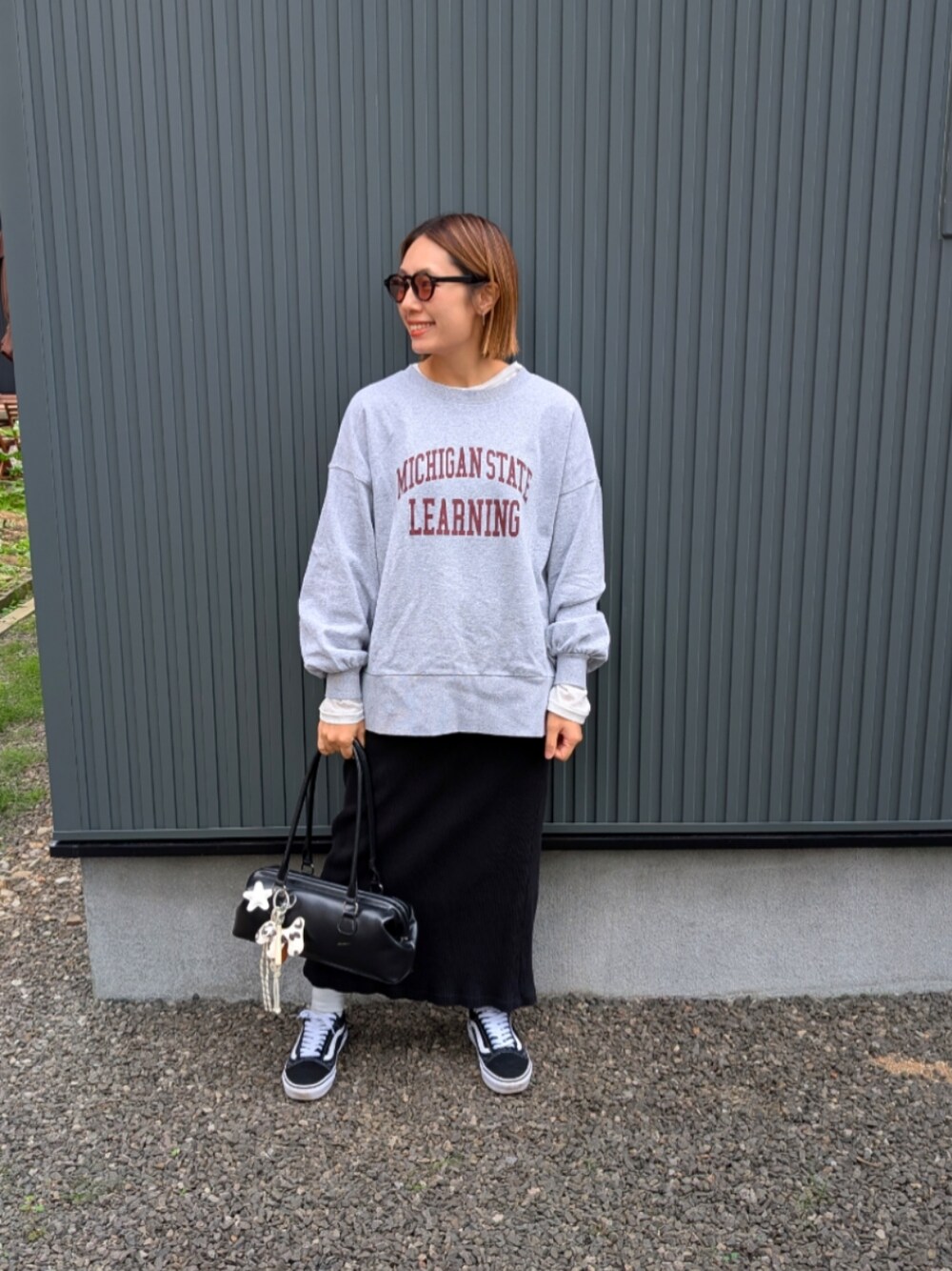 スウェットコーデ🍂グレーにロゴが可愛いです🍁