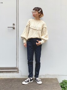 _a_n_c_o___のニット/セーター「ダイヤケーブルニットチュニック」を使ったコーディネート
