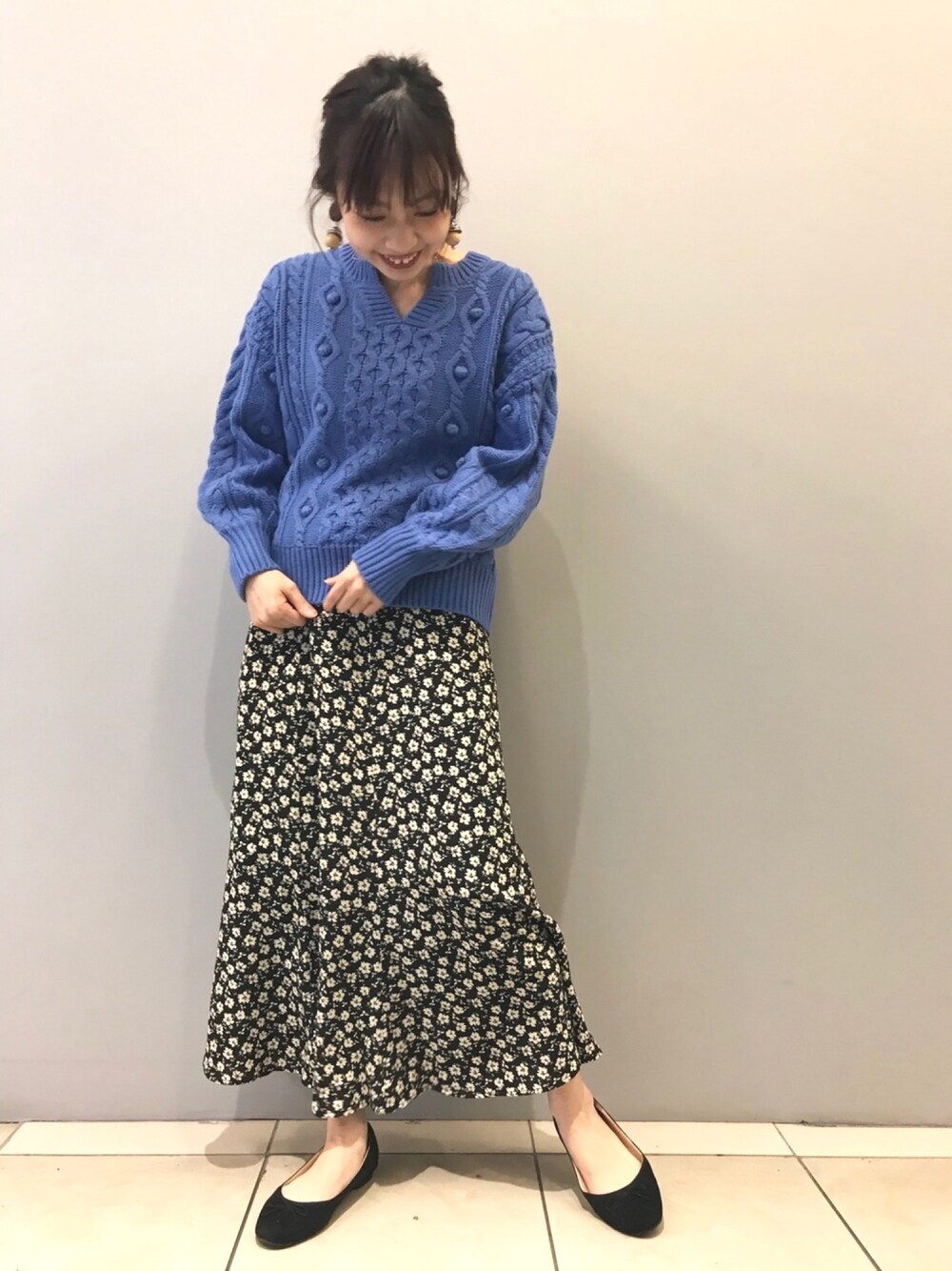 こんばんは🍎 今日は成人の日でしたね 振袖姿の人をたくさんみかけました すごい素敵で、今日はお天気も良くて ●花柄スカートかわいいコーデ● 花柄スカートの形がきれいすぎてお気に入り! すそ広がりなラインが◎ モノトーンなのでブルーのトップスをもってきました 今日も一日お疲れ様です🌈