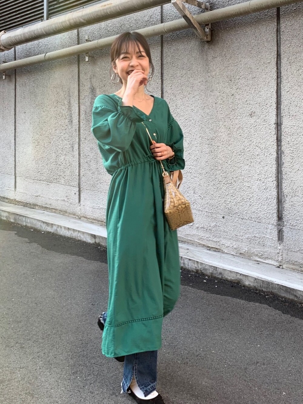 こんばんは🍎 前髪が伸びてきてどうしたらいいか毎日困ってます 切りたい衝動にもかられますが ここまで伸びたので我慢、、、 ●みどりかわいすぎコーデ● みどりいろがかわいすぎるワンピース 羽織でも使えるので◎ デニムでカジュアルに 今日も一日お疲れ様でした🌈