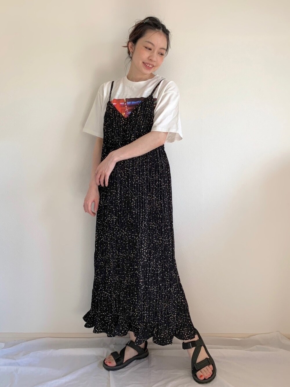 こんばんは🐈 今日はもう一つ ●メンズTシャツコーデ● メンズのフォトプリントTがかわいくてゲット ワンピースで合わせてみました お気に入り! 今日も一日お疲れ様でした🌈