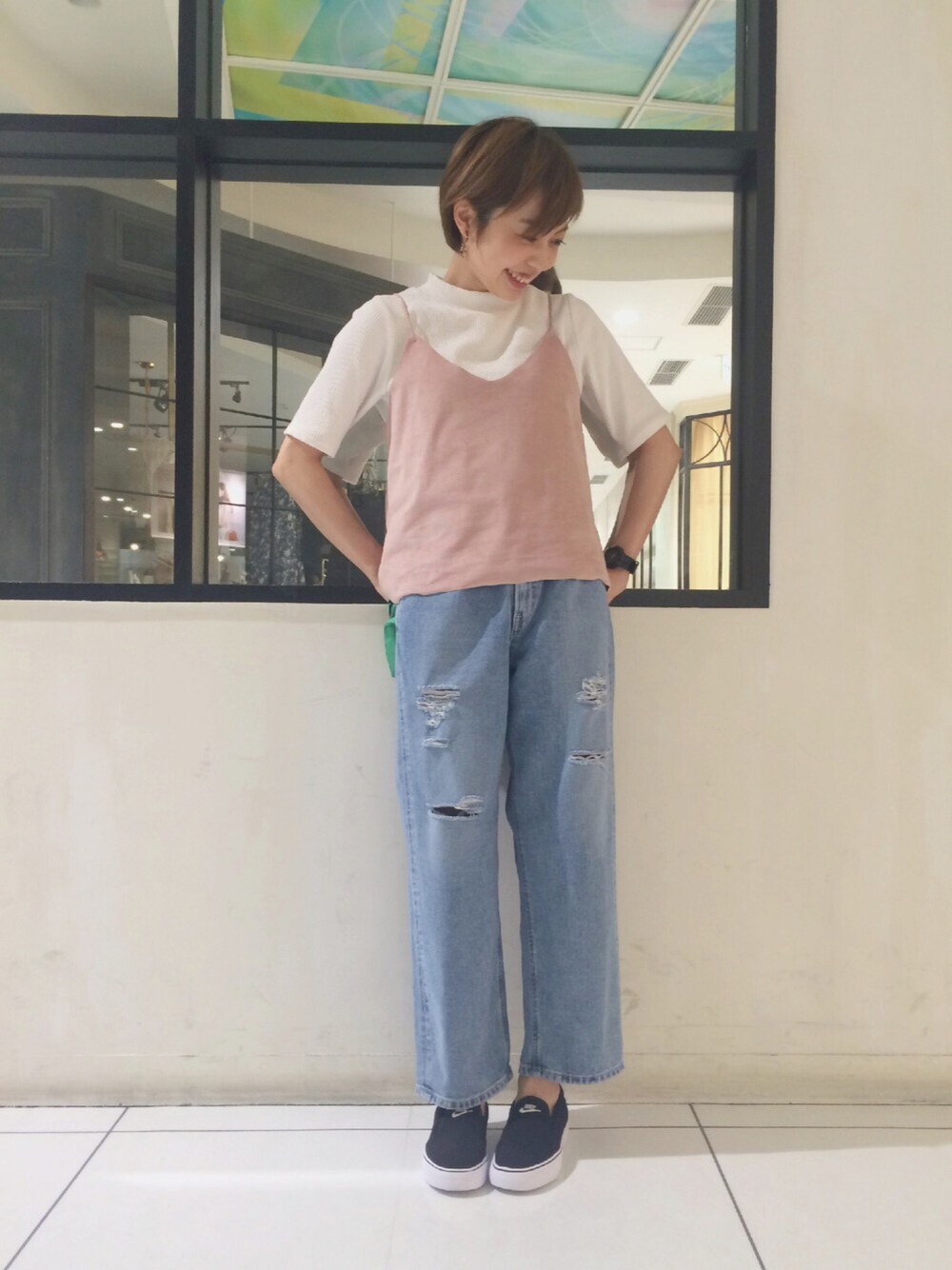 ネコカフェで癒されてきましたあんこです ピンク大好きな今日のコーデ NIKEのスリッポンもかわいすぎてはきやすすぎです★