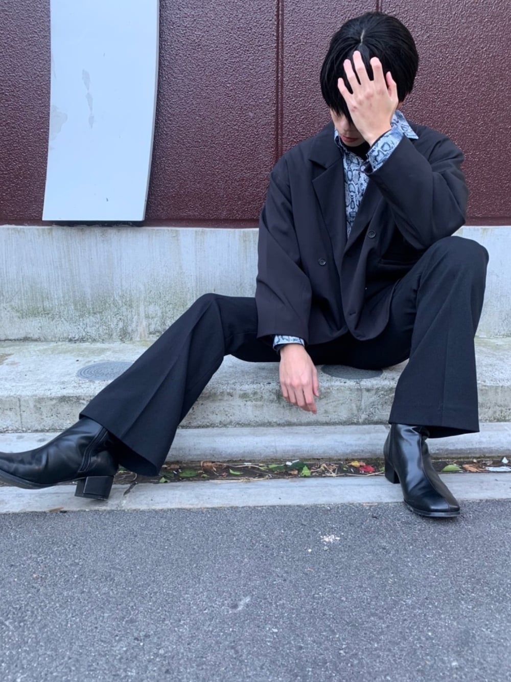 フレアパンツと、ヒールブーツで足長効果 抜群👢 さらに黒のジャケットを合わせセットアップ風にすることで、大人っぽいさアップ🆙 その日の気分に合わせてトップスを変えることで色んな演出を楽しめます!! 今回はパイソン柄にし、インパクトを強めました!! モード系ファッション
