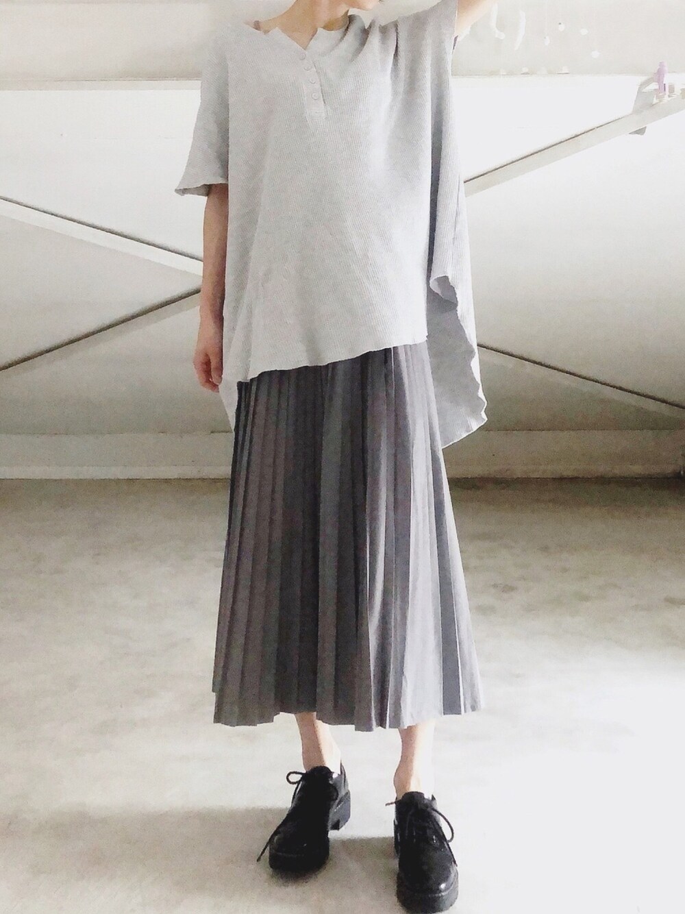 アンティカのワッフルトップス🧇 ビックシルエットで、後ろが長いデザイン💗 これは、めちゃ使える-☺️ 黒とベージュほしかったけど、売り切れてて。 でもグレーも可愛かったぁ✨