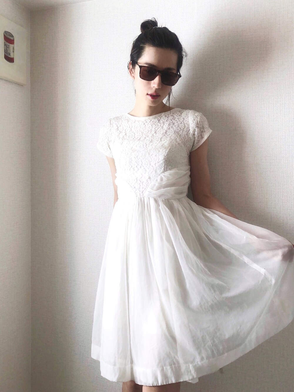 vintageのレースとチュールワンピ👗✨ 本当にぴったりサイズで、運命感じましたー💕 vintage好きな方いないかなぁ? 大量生産では絶対できない複雑なデザインがビンテージの好きなところ☺️ このワンピもウエストで切り替えに違う生地を使っていたり、 背中は縦にスリットがあったりとディテールの素晴らしさに感動します🥺 他の写真はインスタにて💋 instagram riyo_model