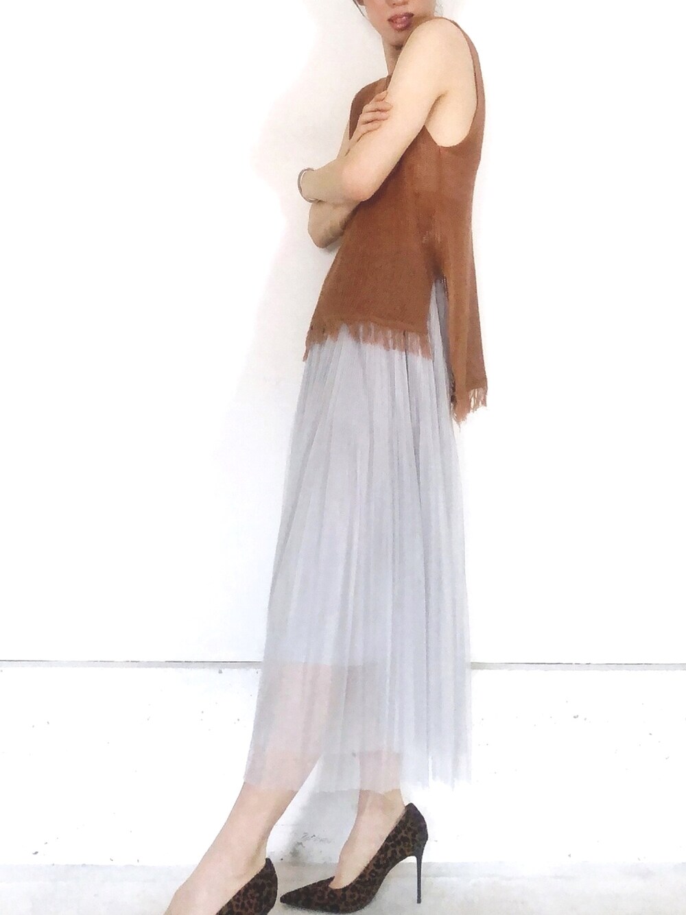 チュールにニットの組み合わせ🧶 大人感があってお気に入りのコーデです☺️✨🧡 たまには横から撮影してみましたーw instagram riyo_model