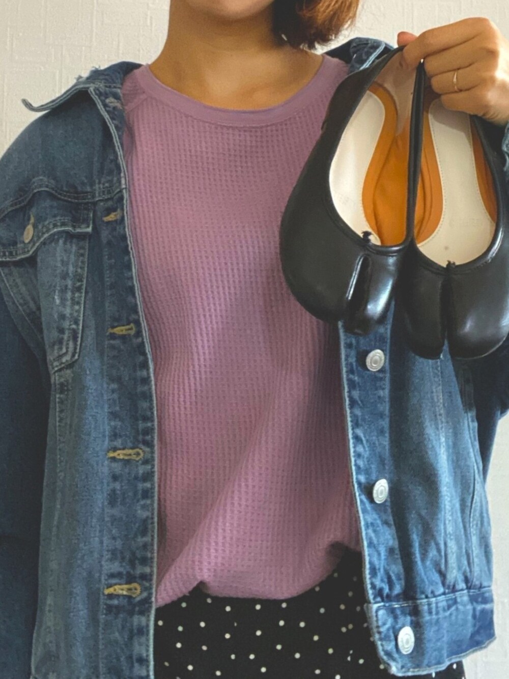 ご覧頂きありがとうございます✨❤️ earthのワッフルパープルロンT がとても可愛いです❤ しまむらのオーバーサイズ デニムジャケットとても使えます♡♡
