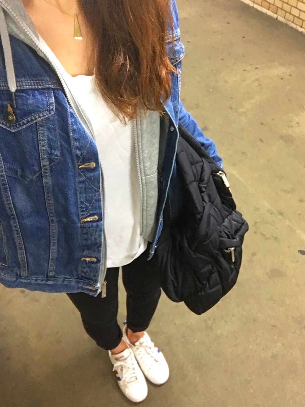 今日は雨が降ってたから、濡れにくいスニーカーにしたよ! このスニーカーに合うようなコーデを考えたらこれになりました😊 ちょっとずつ暖かくなってきて、薄着でも寒くないから嬉しい♡