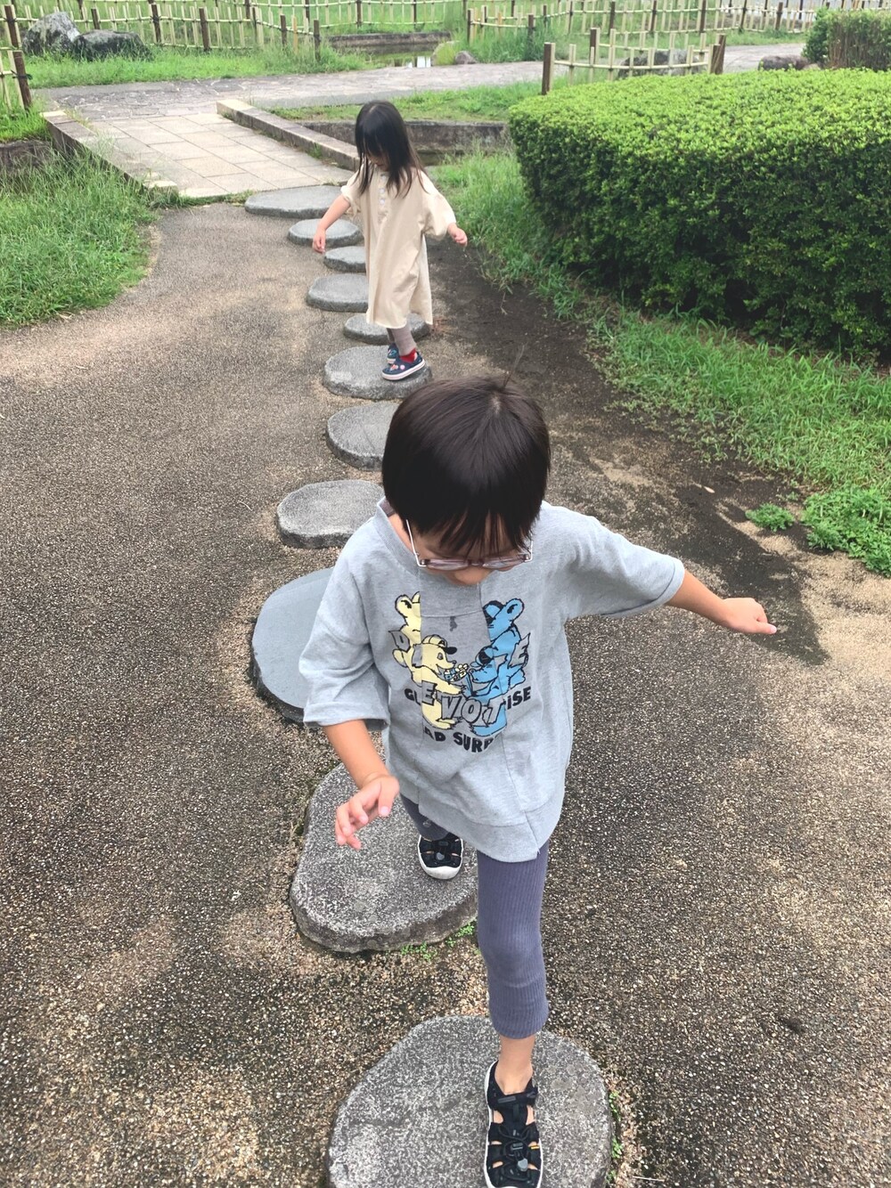 夏の終わり🌞終了のお知らせ Life Support Productsのワンピース 100cm、丈感が大好きです♡ それとRもYも自ら選んでくる monmimiさんのレギンス!! 履きやすいんだろうなぁ〜と思う❤️❤️ さぁ、そろそろ秋の始まりです🍂🤎