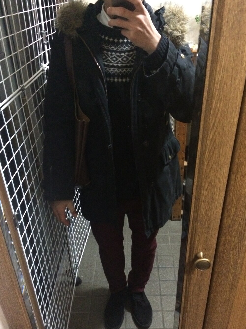 黒とボルドー中心で構成したコーデ。コートもニットも探したけど見つからなかった^_^;