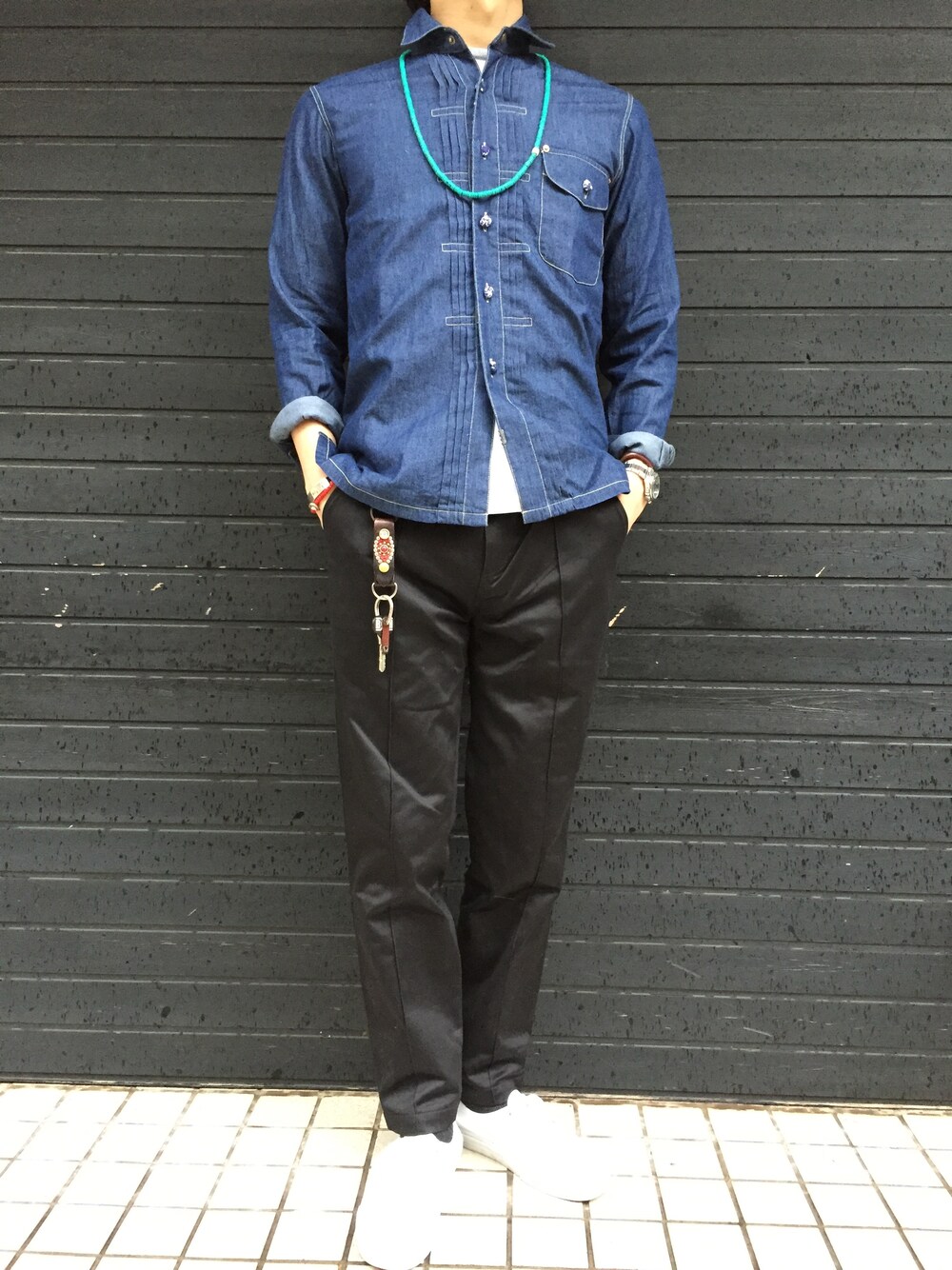 NEXUSVII.のデニムシャツをメインにコーディネートしました。 [BARCLAYA DRESS SHIRT] ライトオンスのデニム生地を使用し、ヴィンテージデニムジャケットをモチーフにしたオリジナルのプリーツ入りシャツです。 ボタンは職人が一個一個、ヴィンテージバンダナを解体して手作業で仕上げたくるみボタンが付きます。 デニム生地とヴィンテージバンダナボタン部分の経年変化も楽しめる一着です。 お時間あれば、弊社のHPやブログも是非ご覧ください。 https://rizm.stores.jp http://r-izm.blogspot.jp 株式会社BEENUTS 7-7-51B101Yatsu, Narashino-shi, Chiba, 275-0026, Japan ZIP:275-0026 TEL:047-493-7677 FAX:047-493-7677