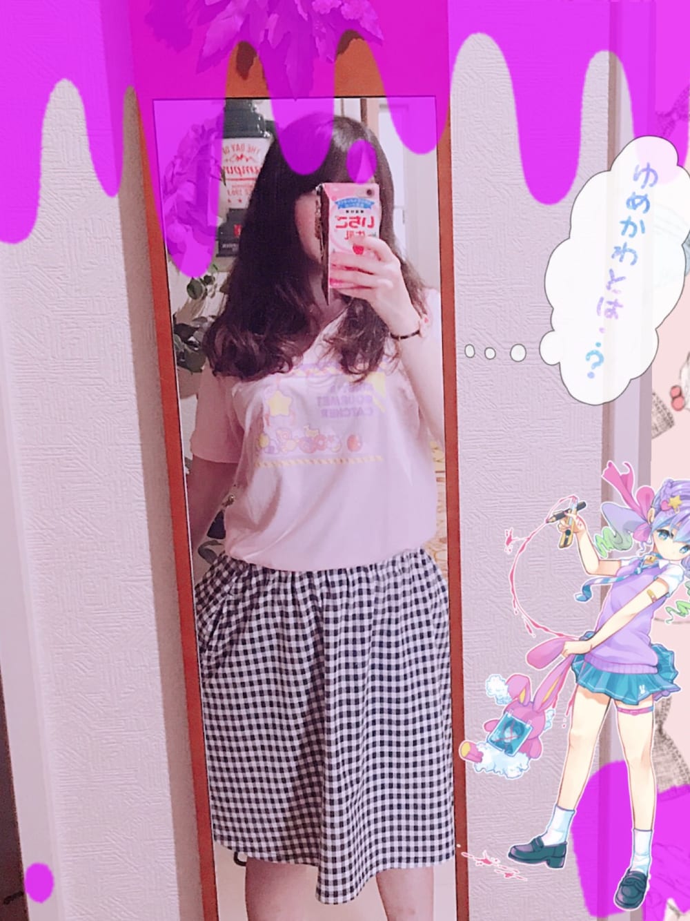 |ョ'ω'〃)おはようございます♪ ちょっとだけゆめかわいい感じにしてみました(笑) Tシャツはフリマで一目惚れして買った、ピンクでゆめかわいい感じのカービィTシャツです(ノ)*´꒳`*(ヾ) それにシンプルめにRETRO GIRLのチェック柄スカートを合わせてみました\( ˶°⚰︎°˵ )/ んぴッ めっちゃゆるい~(笑)