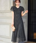 Rinyoのドレス「ラッフルカラー総レース フレア ロング 結婚式 ワンピース パーティードレス オケージョンドレス お呼ばれ 二次会 成人式 同窓会 謝恩会」を使ったコーディネート