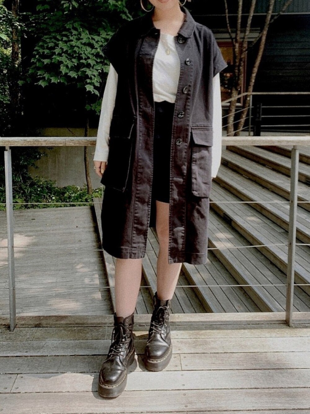 RIKO(JEANASIS池袋ルミネ店)のミリタリージャケット「SLEEVELESS COTTON ジャケット」を使ったコーディネート
