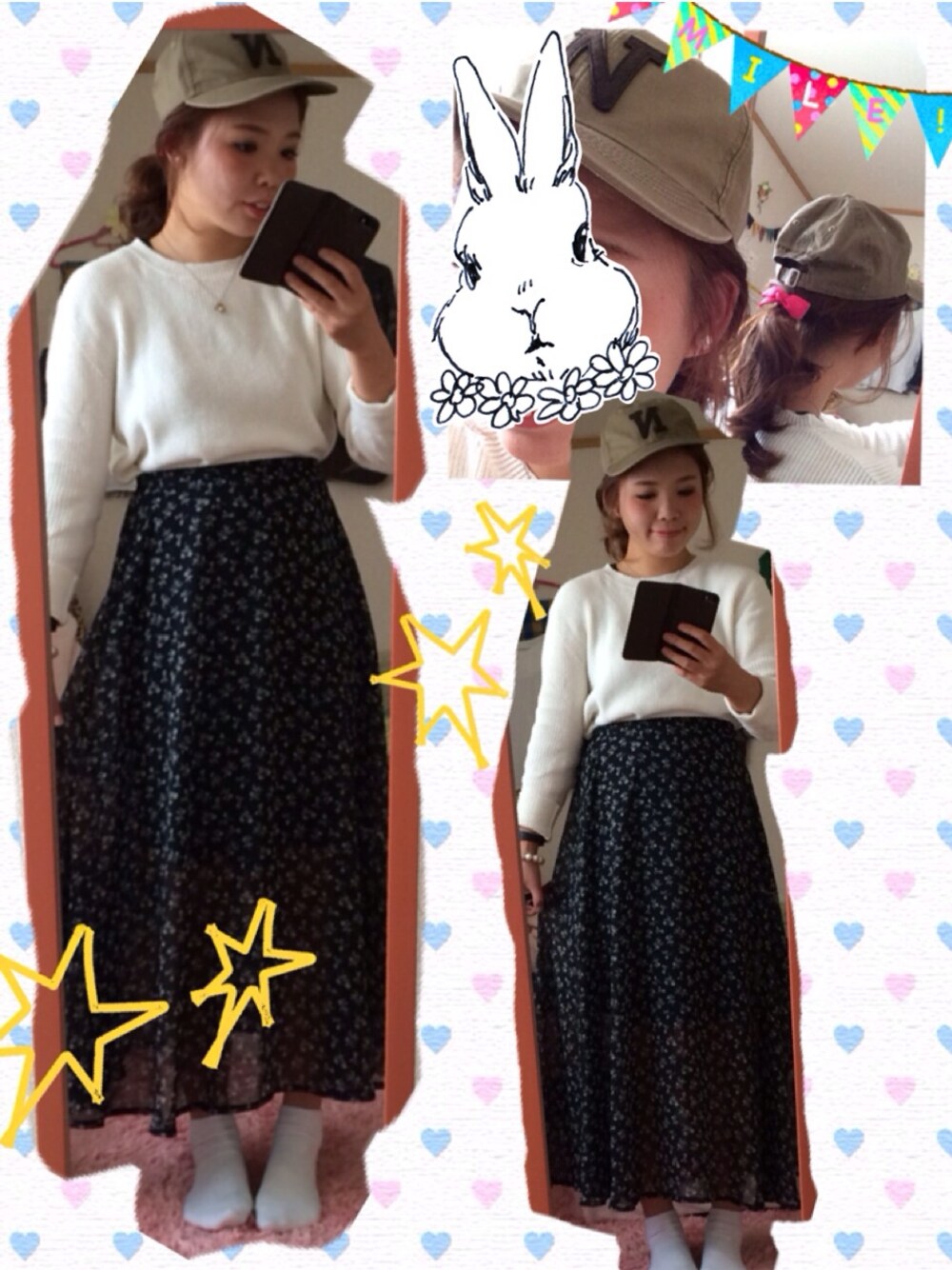 ☺︎♩ トップ、gu ボトム、kastane キャップ、UNIQLO