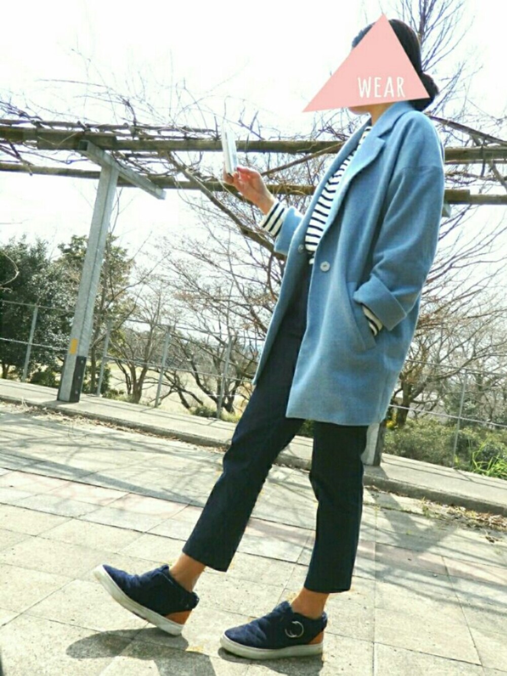 今日はドライブをテーマに! ウエストの後ろ部分がゴムになってるユニクロのアンクルパンツ楽チン。 何よりも下半身太りごまかせるのありがたい。 コートはデパートバーゲンで激安でゲットしたもの。