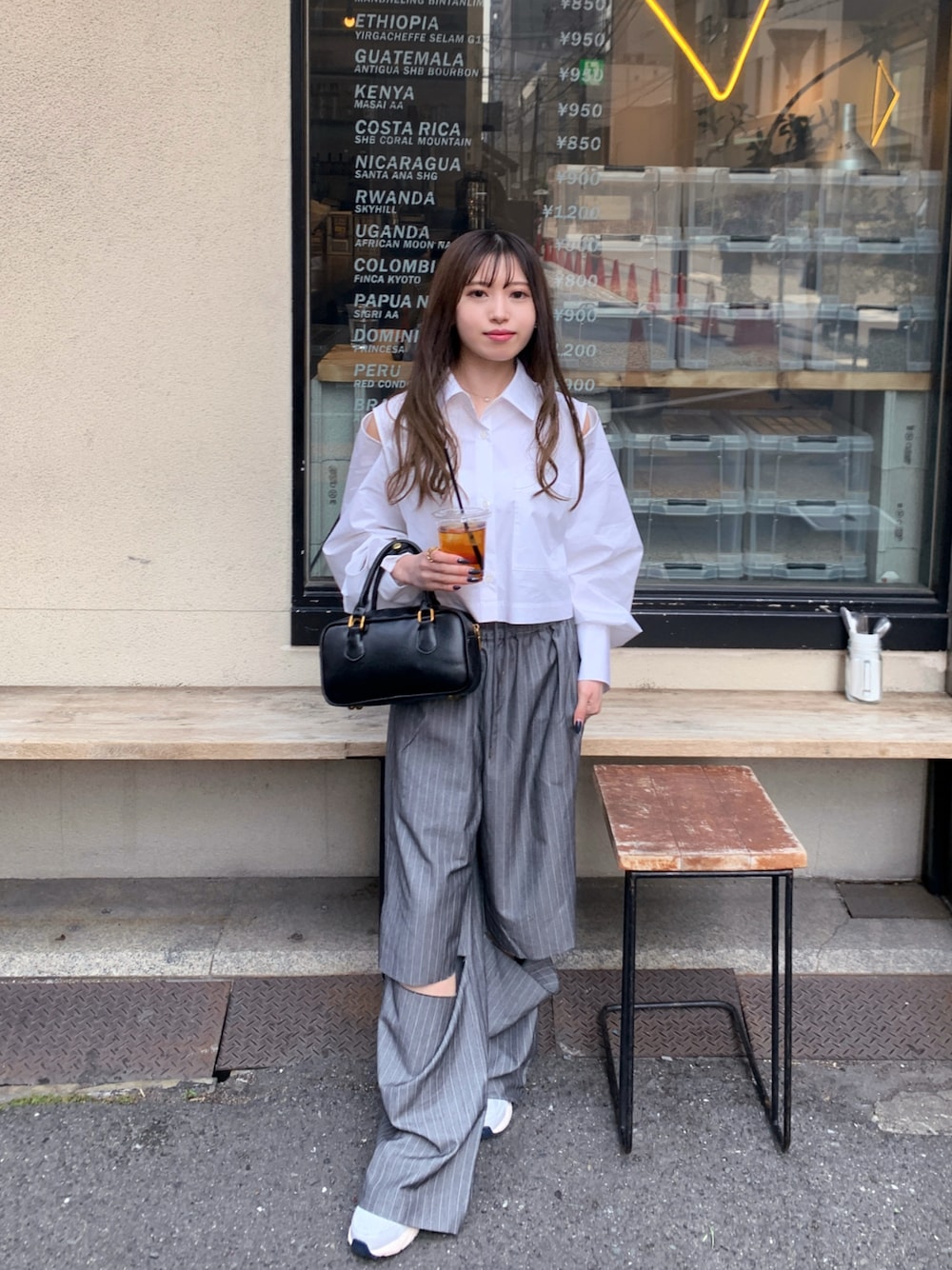 rのスラックス「Mode moodスリットストレートパンツ」を使ったコーディネート