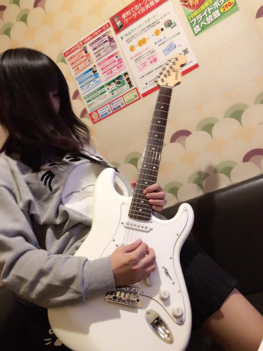 久々にギターを弾きました。 スウェットは一目惚れしたトロちゃん(笑) スカートに見えるけど、実はキュロットです♪