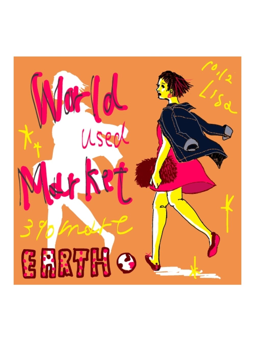 デニムジャケット world used market クラッチバック 390mart 靴は絵のトーンに合わせて少しかえてます 久しぶりの更新です 絵の雰囲気変えてかっこよく。がテーマです