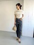 ヘルシーな肌見せが叶う、オフショルダーニットを着用しました♪ まだジメジメと暑いけど、少し秋らしい装いが気になるという方にお勧めのニット。 私はシルエットがお気に入りの、NEEDBYデニムとスタイリングしました! 程良い厚みのニット素材のため、トップスインもしやすい生地感です◎ ドライタッチなシャリ感のある糸なので、涼しく着用頂けますよ。