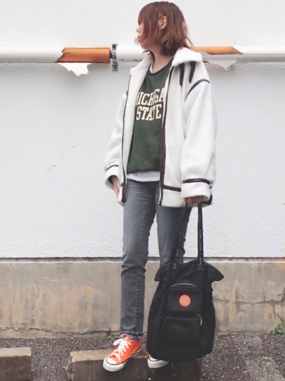 #フライトジャケット #スウェットコーデ 冬もたくさんオレンジコンバース履きたい🍊 いつもありがとうございます🙇♂️ Instagram *⋆✈ wear_mai2