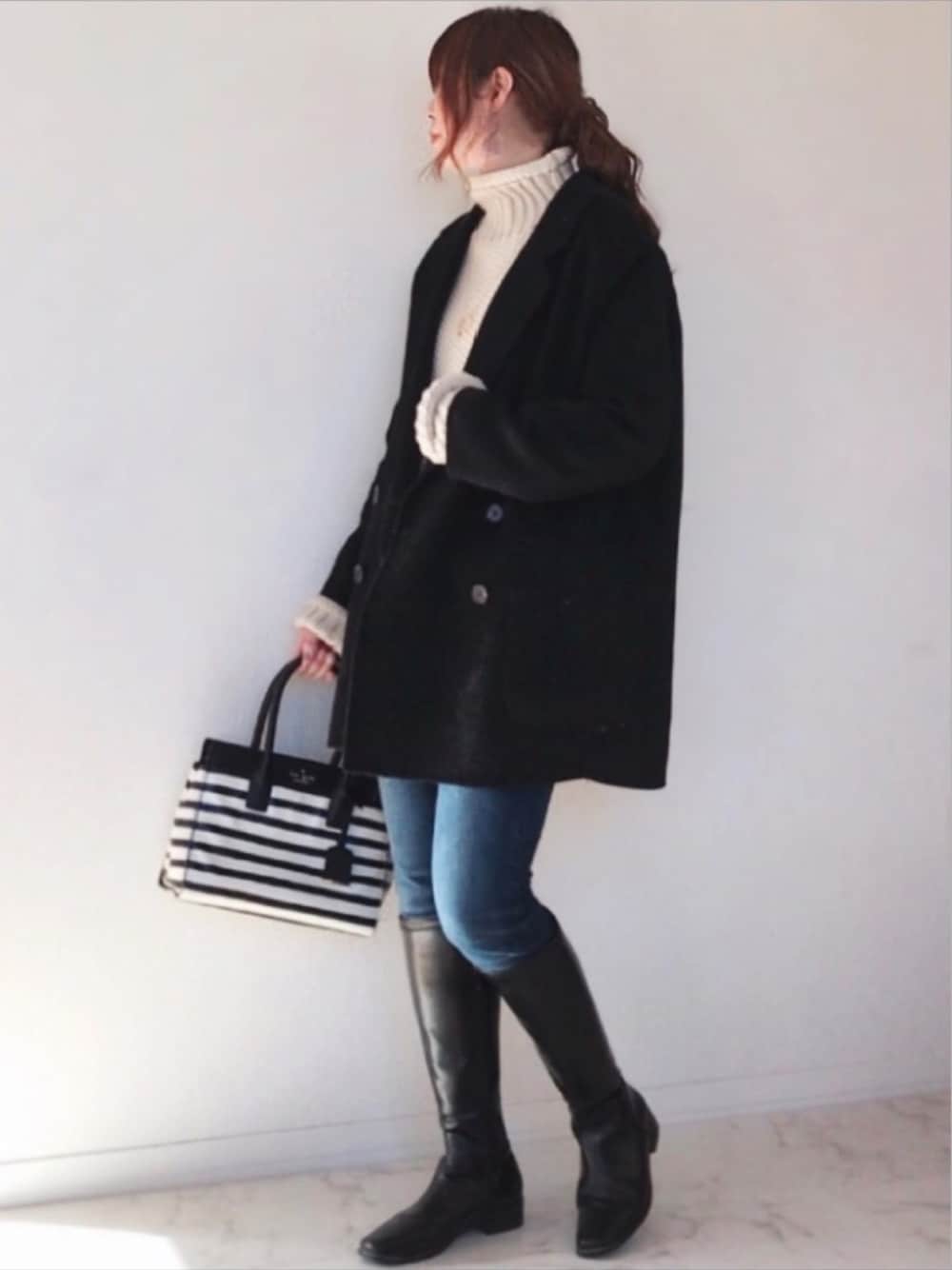 舞妓のピーコート「ダブルボタントラッドショートコート【ウール100%】【ミドル丈】」を使ったコーディネート