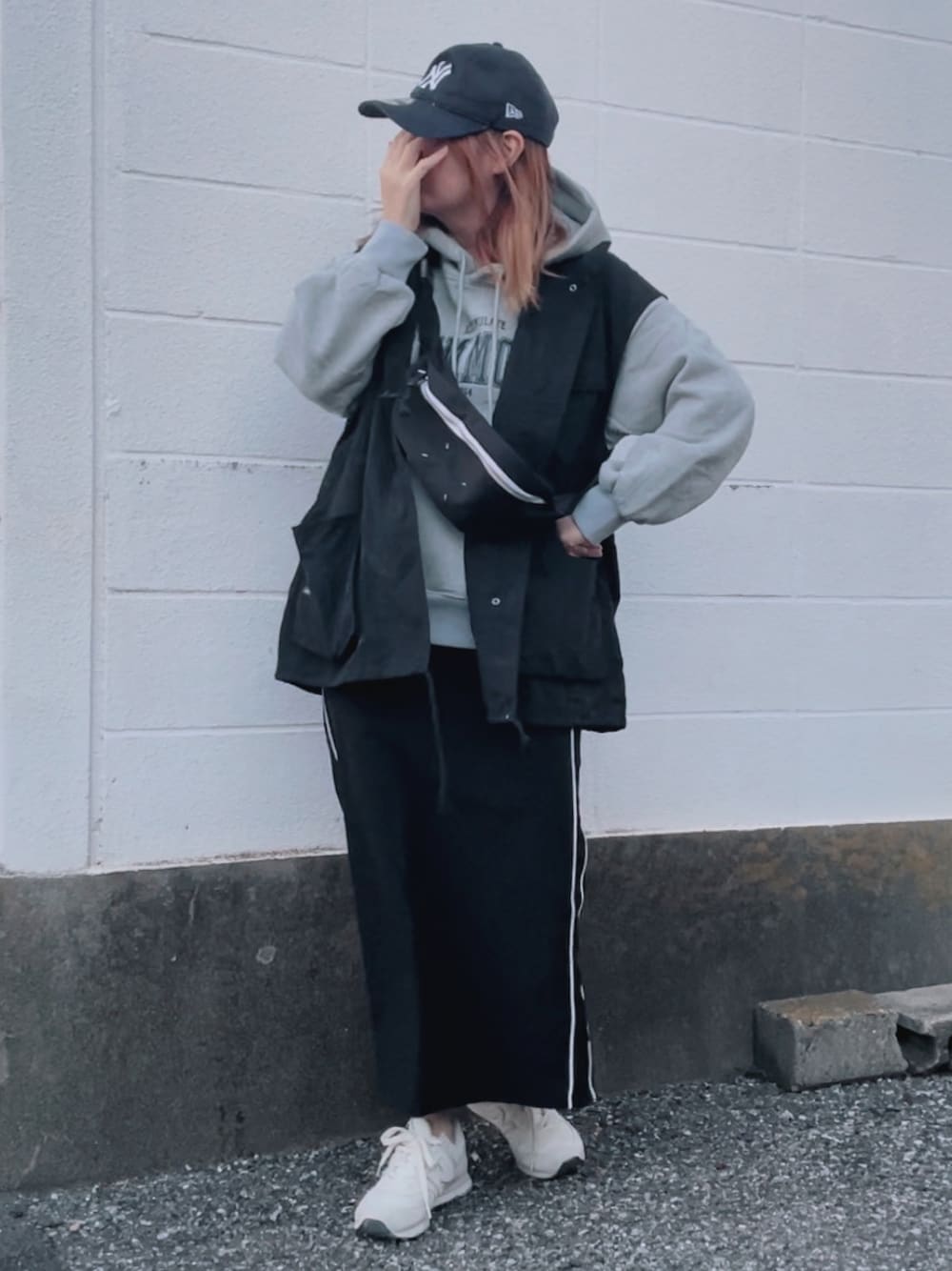 舞妓のパーカー「オーバーサイズロゴプリントフーディー」を使ったコーディネート
