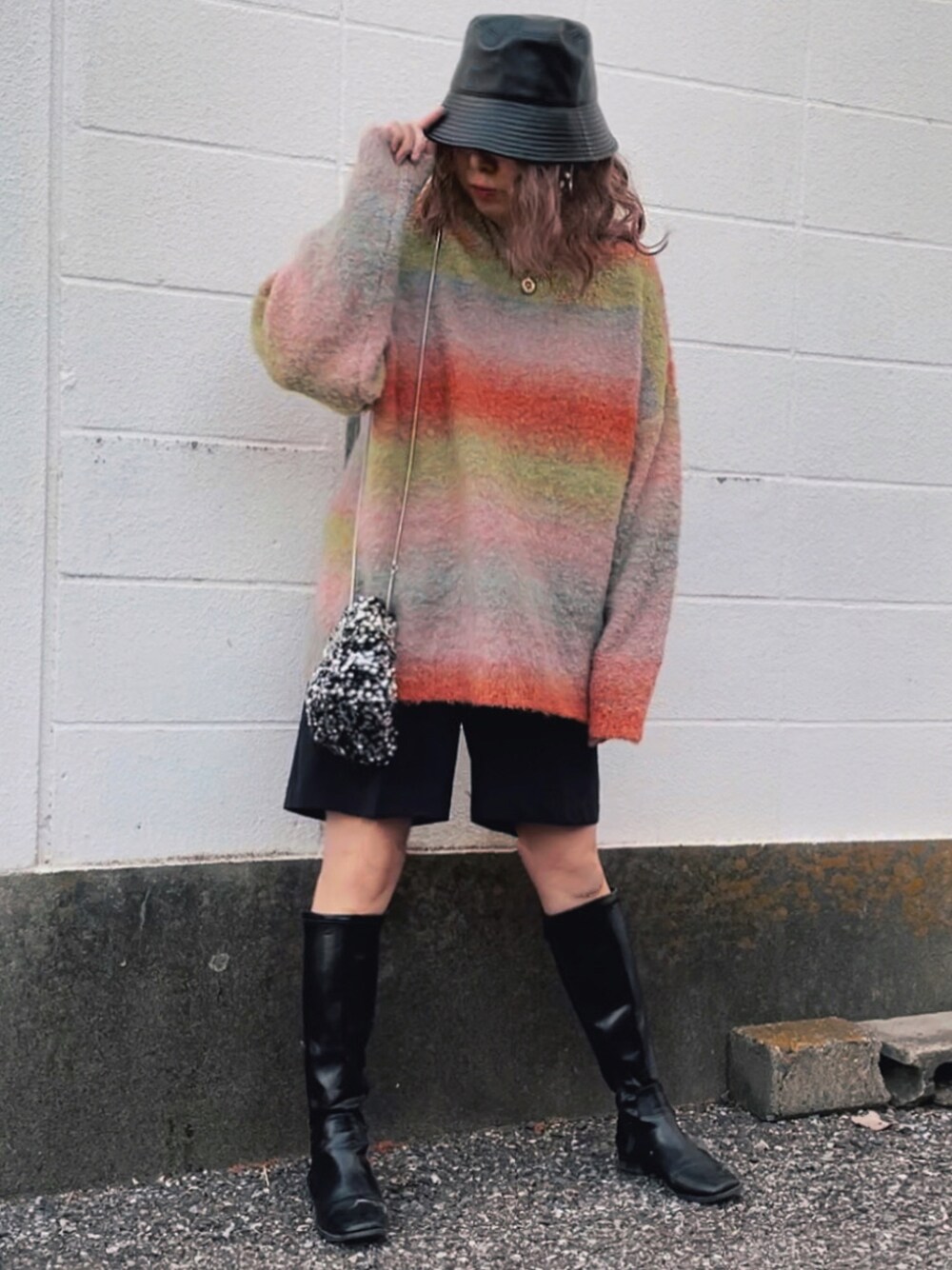 舞妓のニット/セーター「オーバーサイズグラデーションニット」を使ったコーディネート