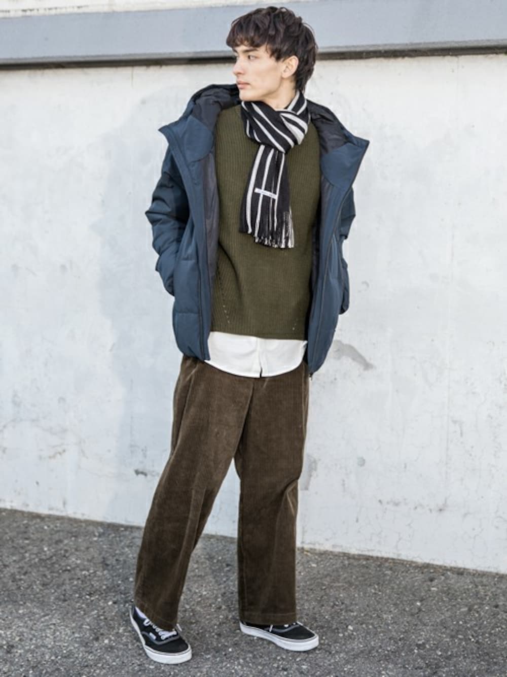 結構外を歩き回るのには丁度いい、しっかり防寒コーデ。 中のニットはニットベストなので、セーターに変えても◎ ダウンジャケットを着てもストリートになり過ぎず、 どこでもいけるカジュアルさにしてみました。